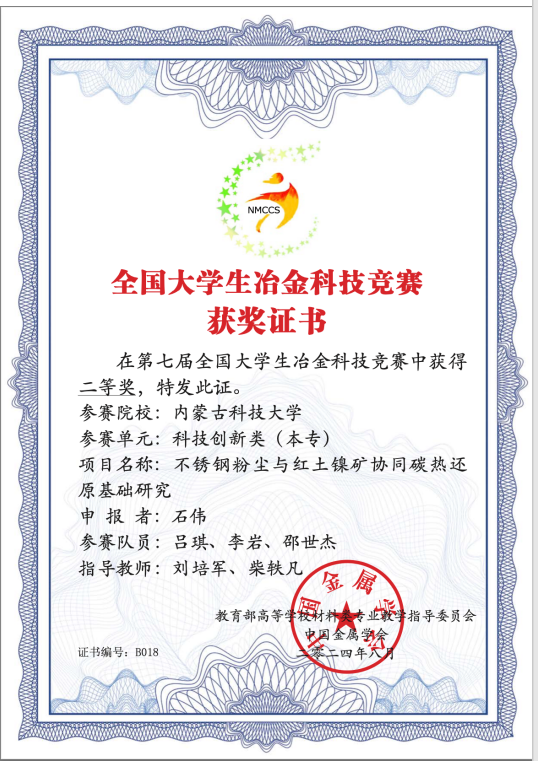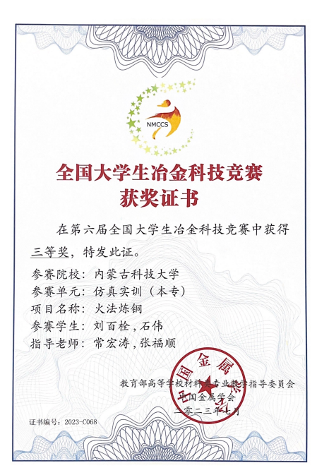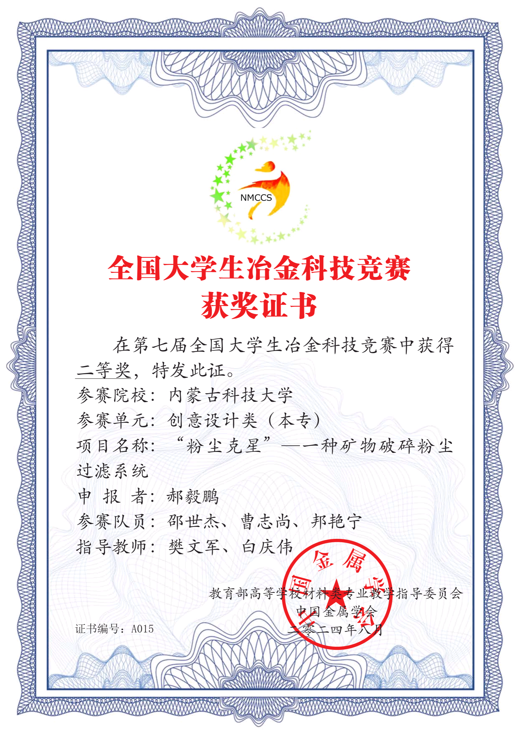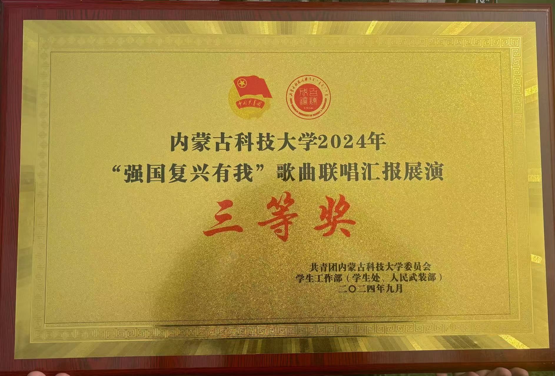 获内蒙古科技大学2024年“强国复兴有我”歌曲联唱汇报展演三等奖