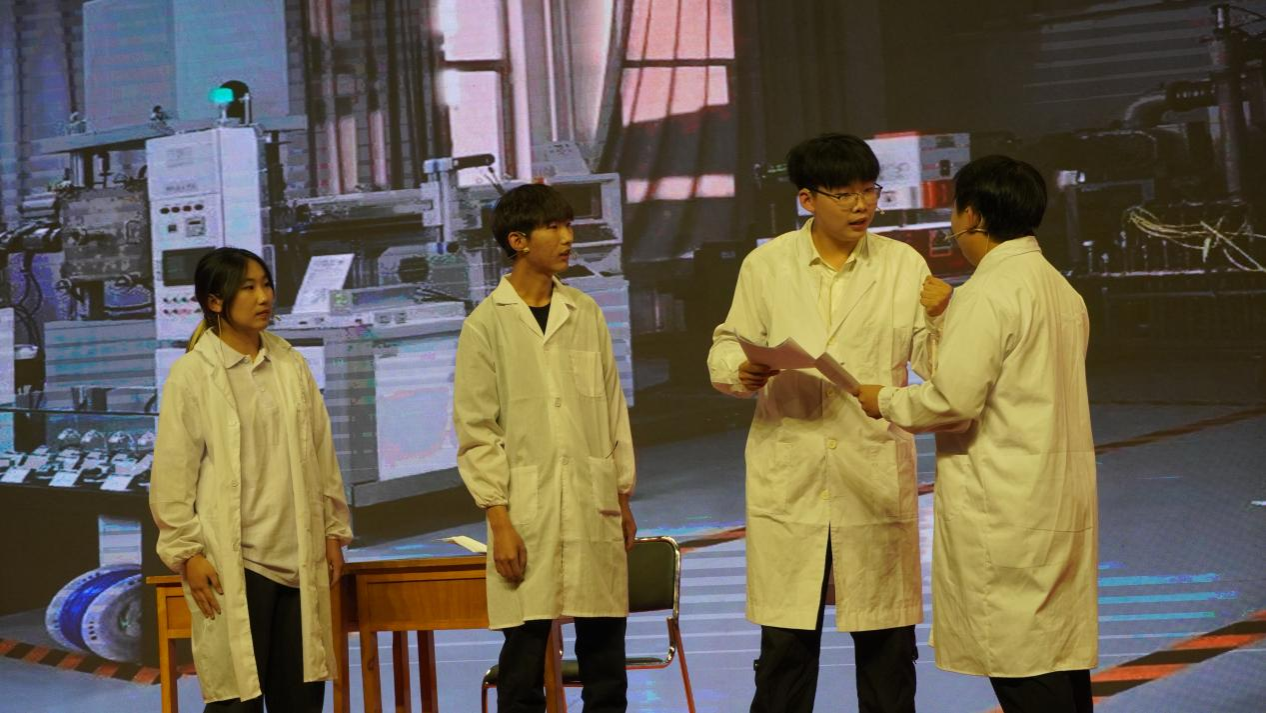 优势专业为依托,通过讲述稀土产业与钢铁冶金领域的科研故事,将 “个人成长” 与 “学校发展” 紧密相连,把科研探索的艰辛与突破融入到情景剧中。从实验室的反复试验到成功的技术攻坚,从遇到瓶颈时的迷茫到取得成果后的喜悦,同学们用真挚的表演让观众仿佛置身其中,深刻体会到在科大这片沃土上,青年学子如何以专业所学助力学校发展,为产业进步贡献力量。