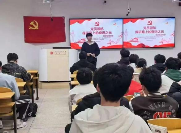 党员领航当“灯塔”,为保研路点亮奋进之光。教室里,分享者倾囊相授保研心得,从规划到备考层层拆解;聆听者眼神专注、笔尖不停,在“传帮带”的温暖氛围里,支部把学业奋进的力量传递给每一个逐梦的身影。