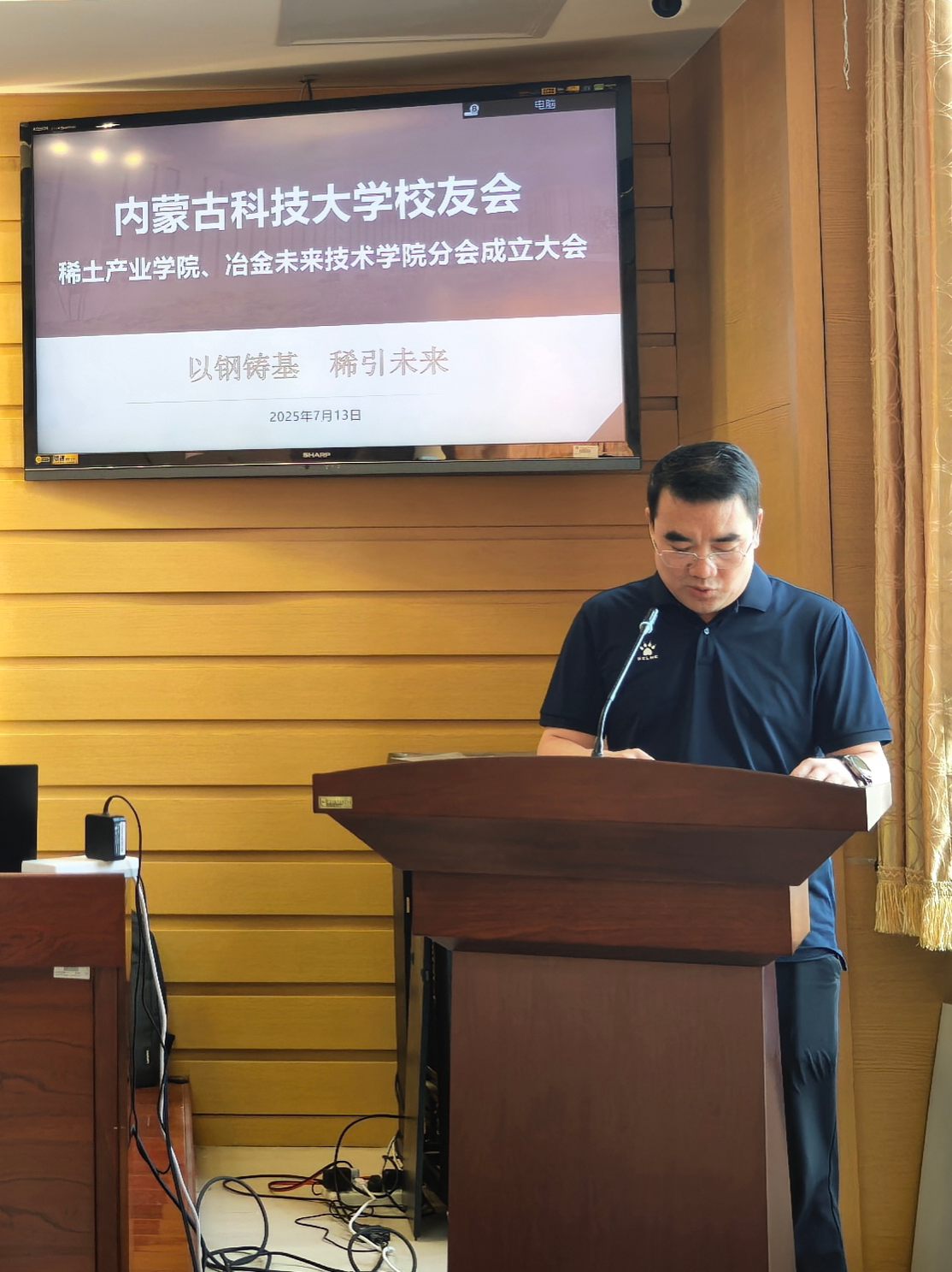 接着,请校友代表包头稀土研究院信息中心副主任赵二雄讲话,回顾十年前在稀土楼里通宵做实验的青春,感慨母校把他“炼”成了今天的技术带头人。他表示愿与万千校友共把中国稀土名片擦得更亮!